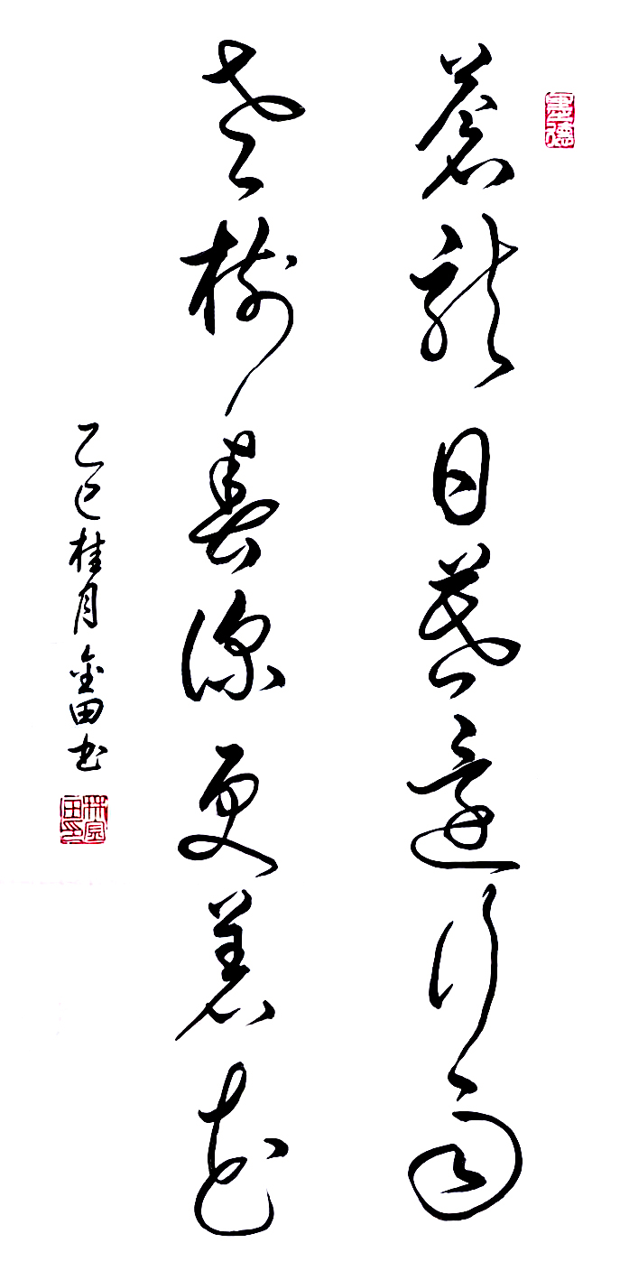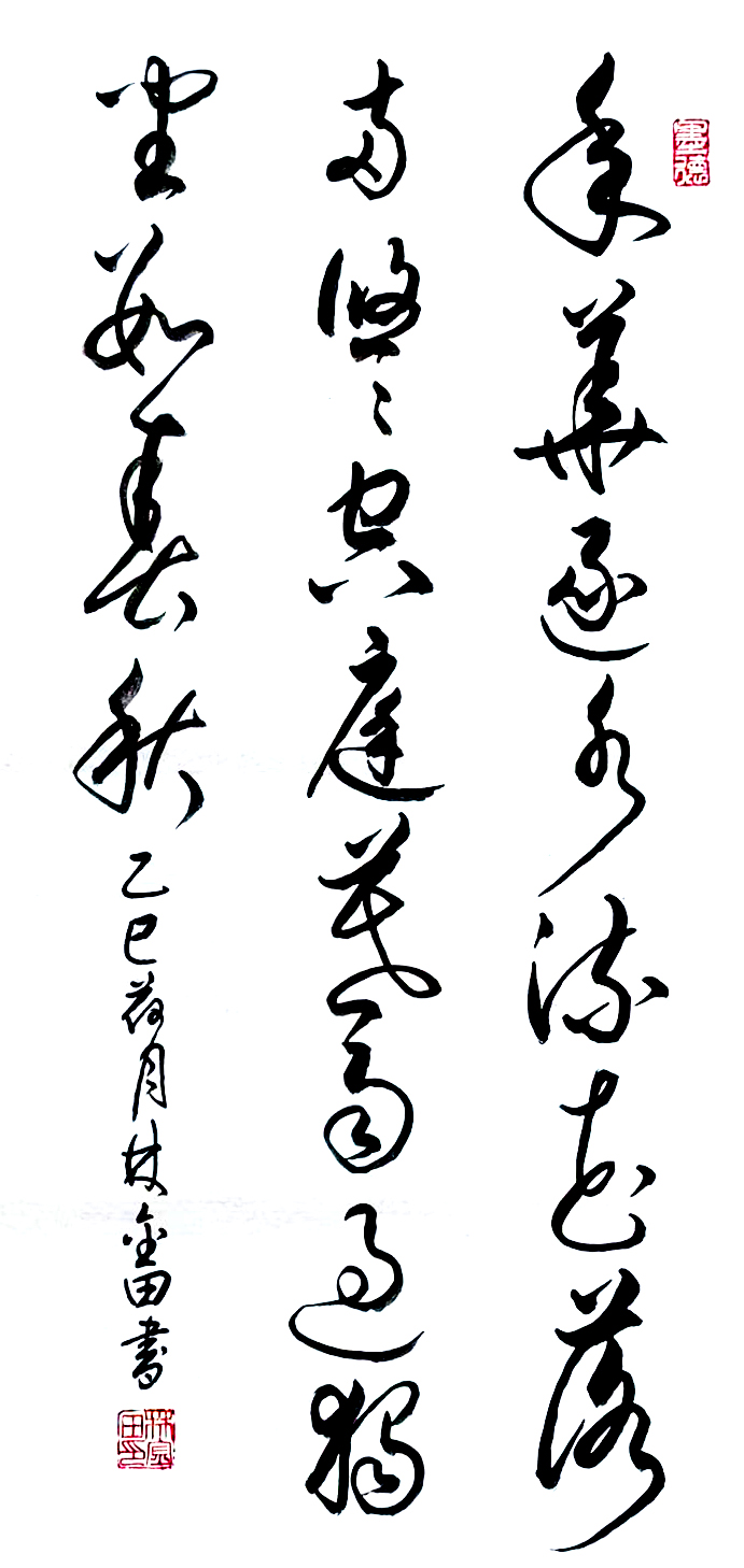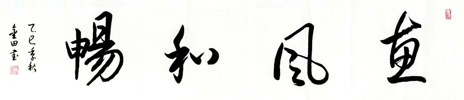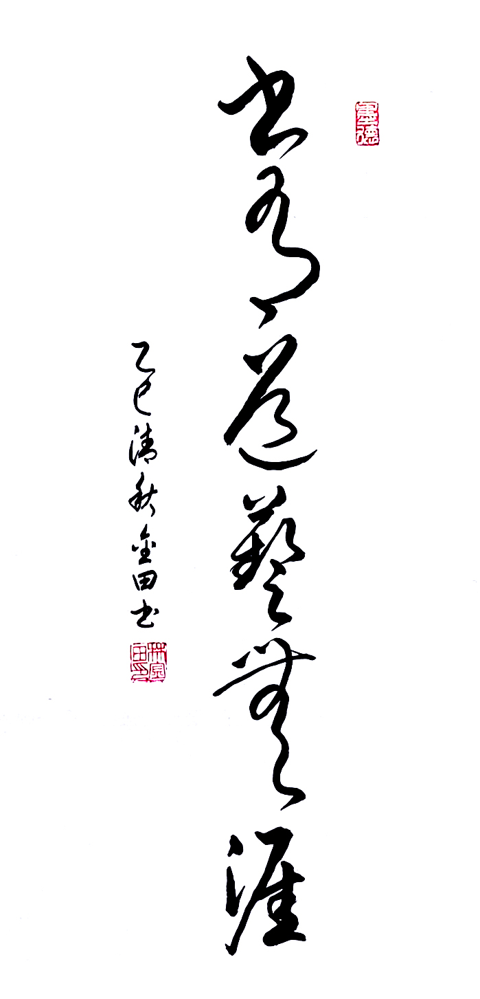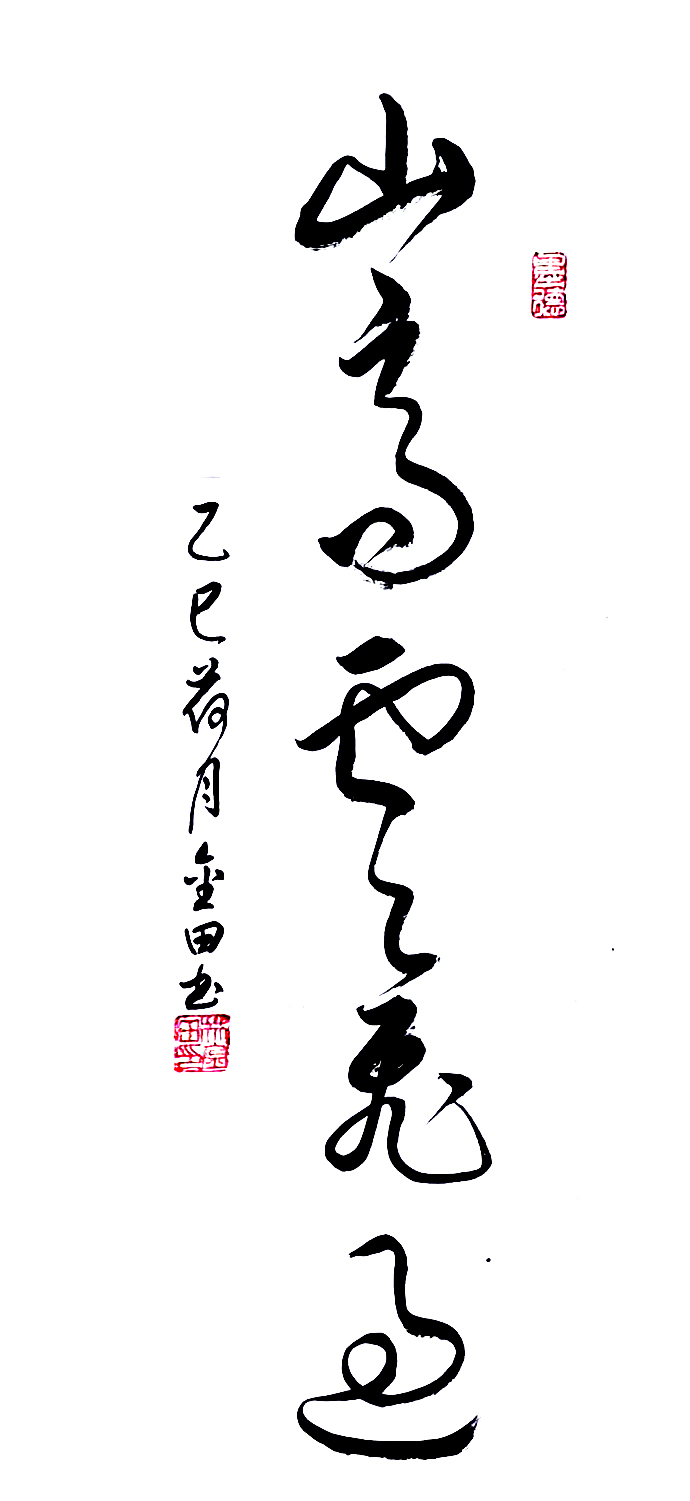 在艺术探索的道路上,林金田始终以虔诚之心临习历代经典碑帖,在传统中汲取无尽养分。他潜心研习孙过庭《书谱》,领悟"翰逸神飞"的草书精髓;追摹二王法帖,体会王羲之的潇洒飘逸与王献之的奔放不羁;沉醉于怀素《自叙帖》的狂草世界,感受"忽然绝叫三五声,满壁纵横千万字"的创作激情。在篆隶方面,他临习《曹全碑》,得其秀美飘逸之韵;揣摩《峄山碑》,感悟秦篆古朴浑厚之风。这种广采博取的研习方式,使他的书法既得传统精髓,又能融会贯通,最终形成独具特色的艺术风格。