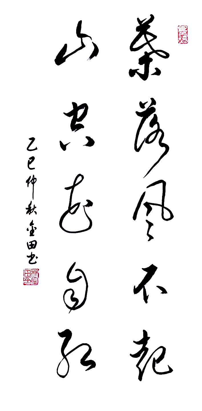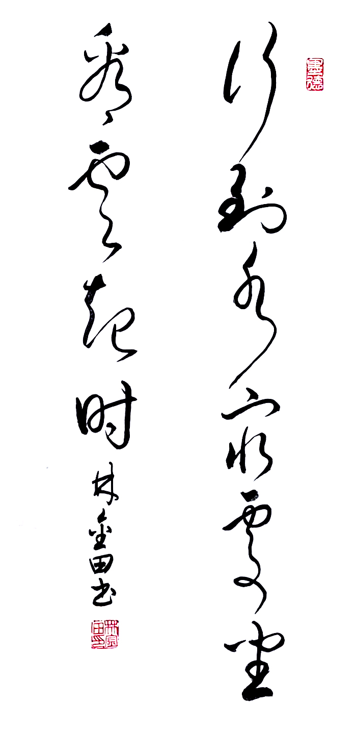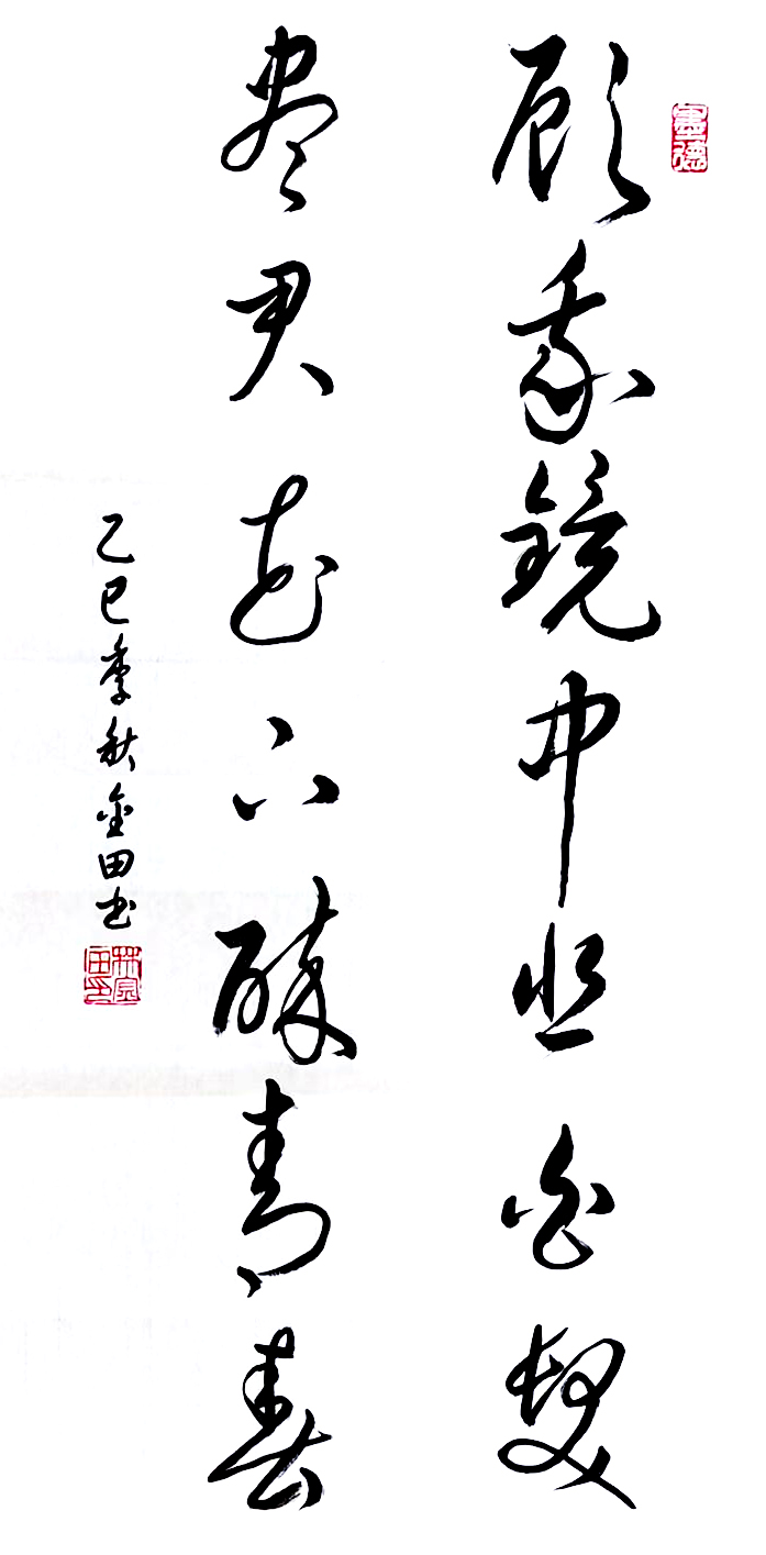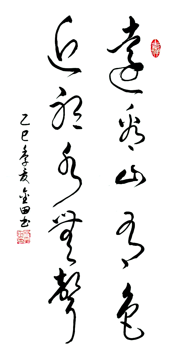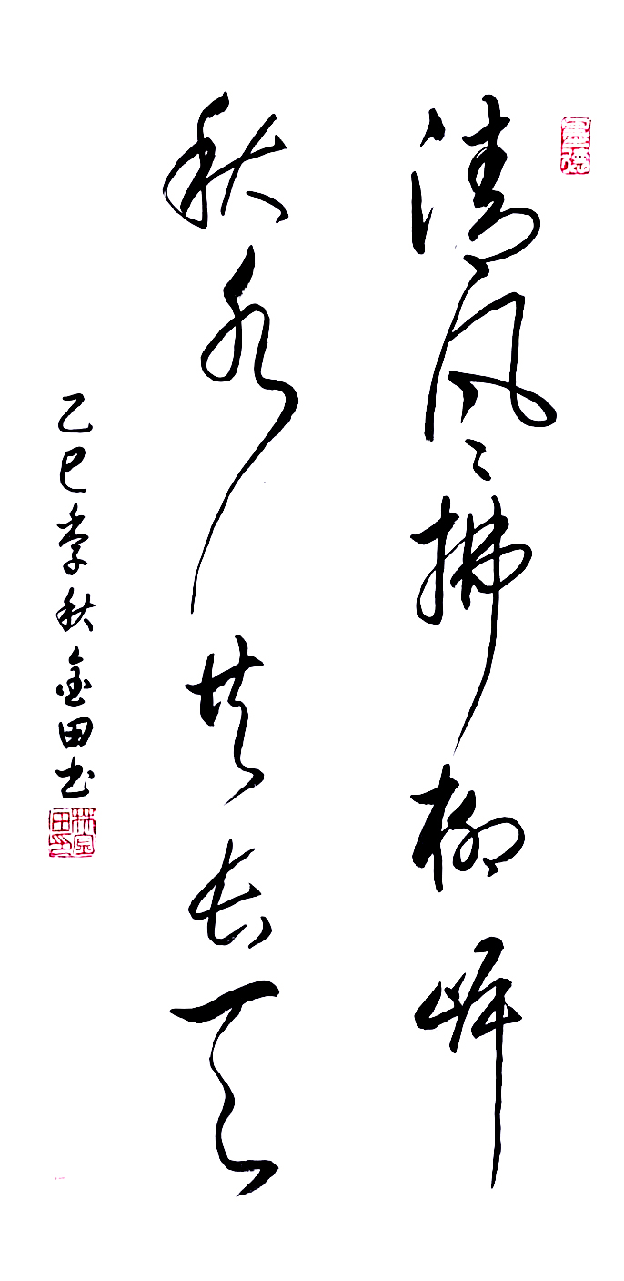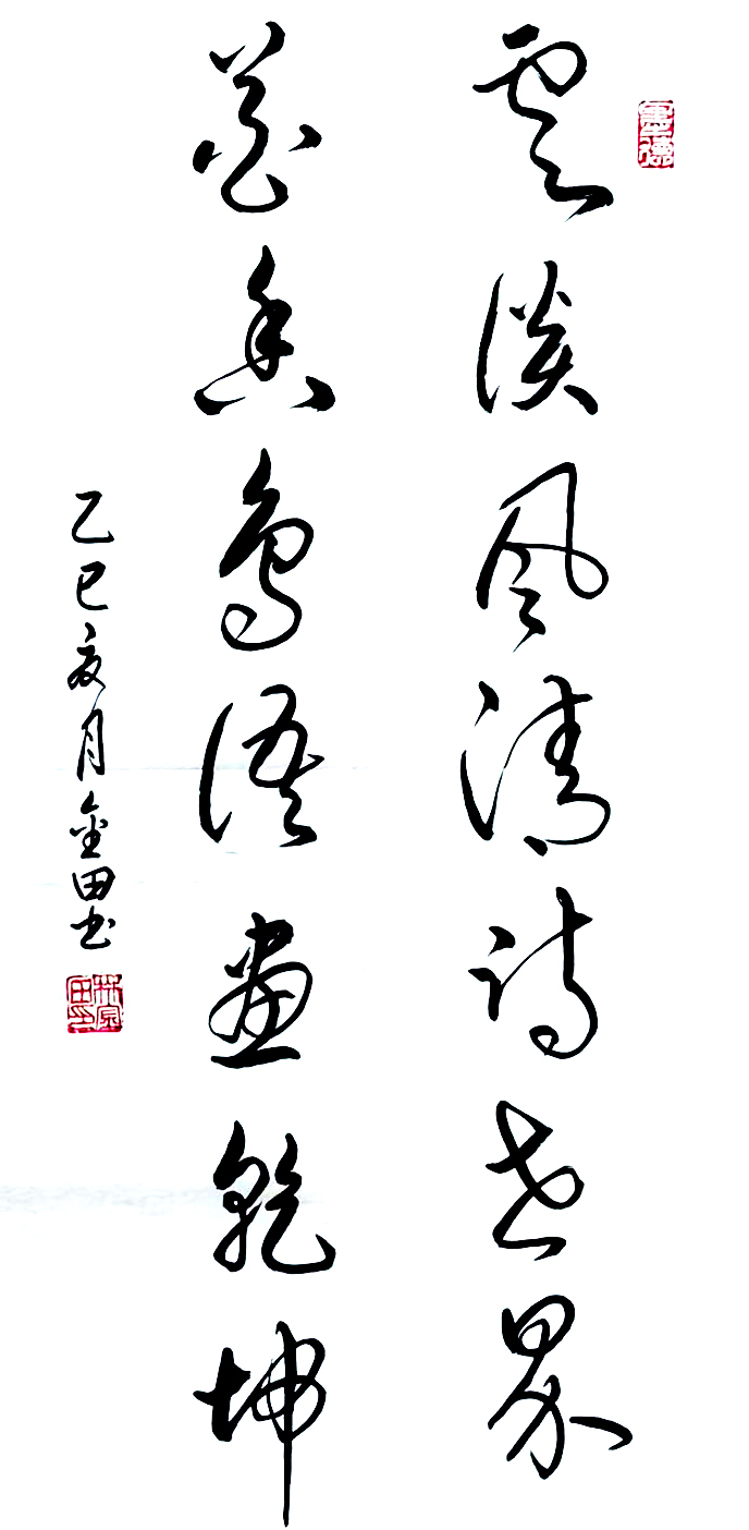 在艺术探索的道路上,林金田始终以虔诚之心临习历代经典碑帖,在传统中汲取无尽养分。他潜心研习孙过庭《书谱》,领悟"翰逸神飞"的草书精髓;追摹二王法帖,体会王羲之的潇洒飘逸与王献之的奔放不羁;沉醉于怀素《自叙帖》的狂草世界,感受"忽然绝叫三五声,满壁纵横千万字"的创作激情。在篆隶方面,他临习《曹全碑》,得其秀美飘逸之韵;揣摩《峄山碑》,感悟秦篆古朴浑厚之风。这种广采博取的研习方式,使他的书法既得传统精髓,又能融会贯通,最终形成独具特色的艺术风格。