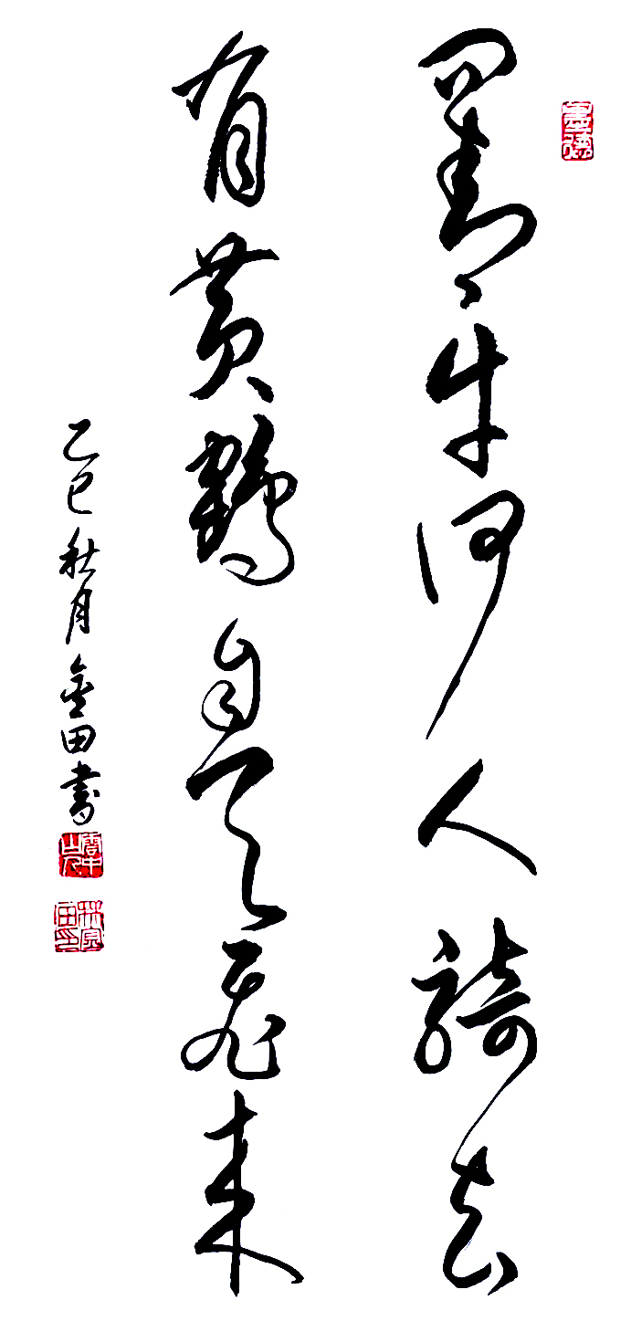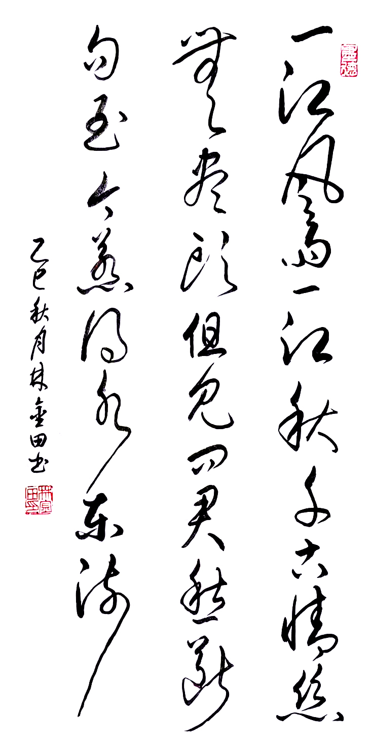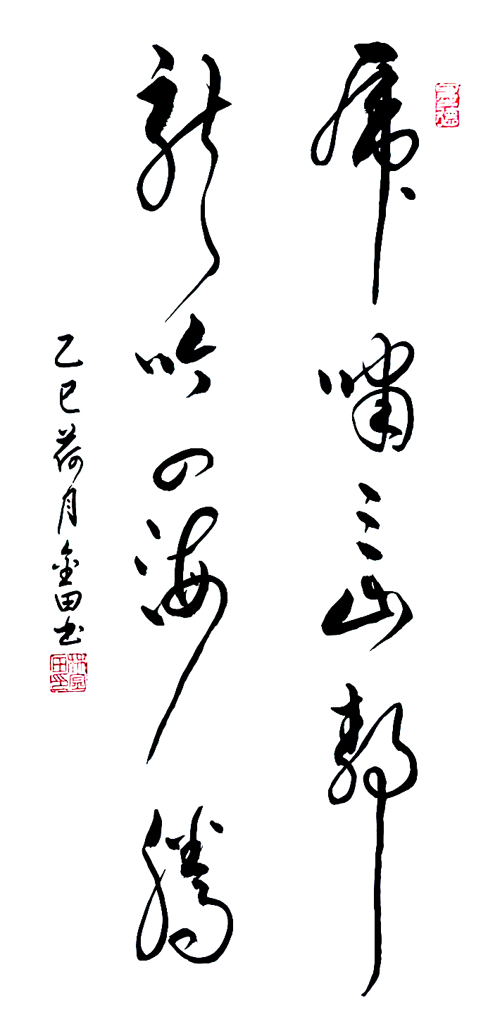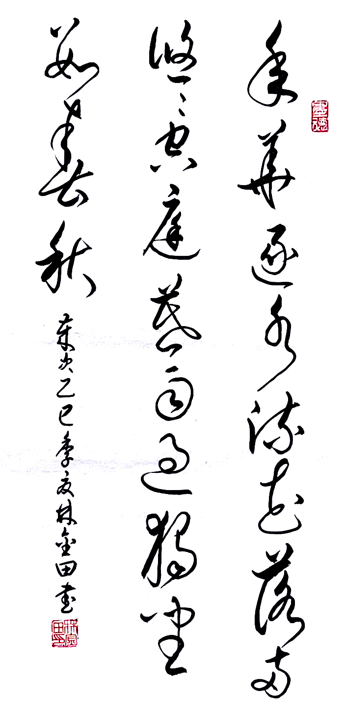 在艺术探索的道路上,林金田始终以虔诚之心临习历代经典碑帖,在传统中汲取无尽养分。他潜心研习孙过庭《书谱》,领悟"翰逸神飞"的草书精髓;追摹二王法帖,体会王羲之的潇洒飘逸与王献之的奔放不羁;沉醉于怀素《自叙帖》的狂草世界,感受"忽然绝叫三五声,满壁纵横千万字"的创作激情。在篆隶方面,他临习《曹全碑》,得其秀美飘逸之韵;揣摩《峄山碑》,感悟秦篆古朴浑厚之风。这种广采博取的研习方式,使他的书法既得传统精髓,又能融会贯通,最终形成独具特色的艺术风格。
