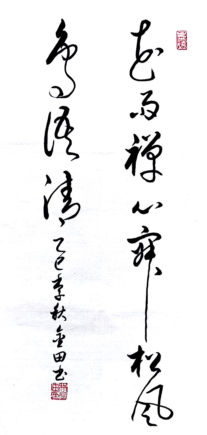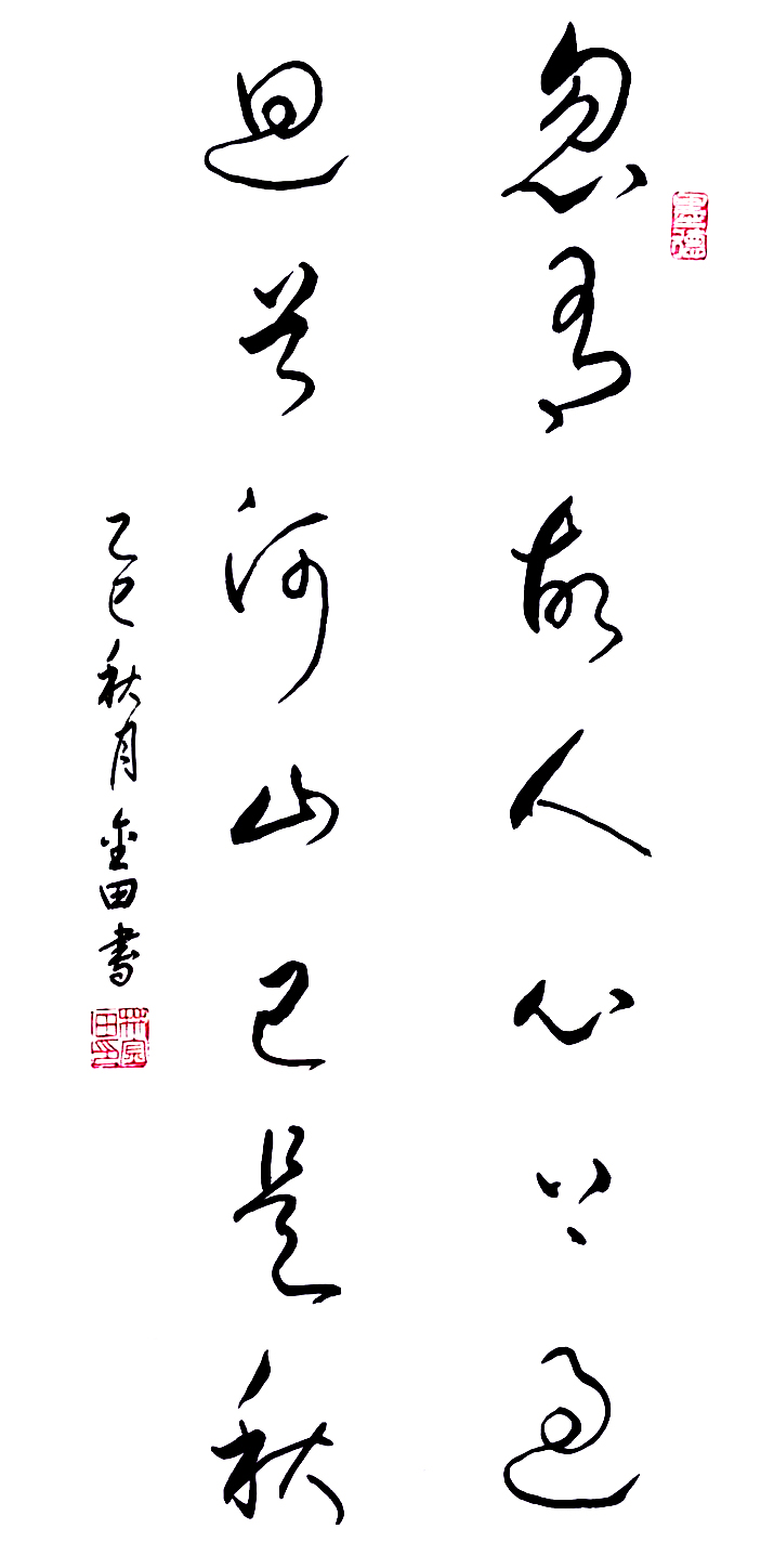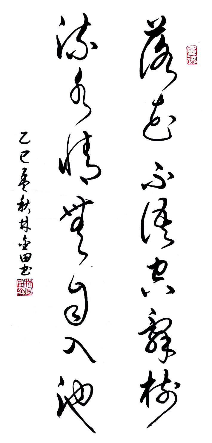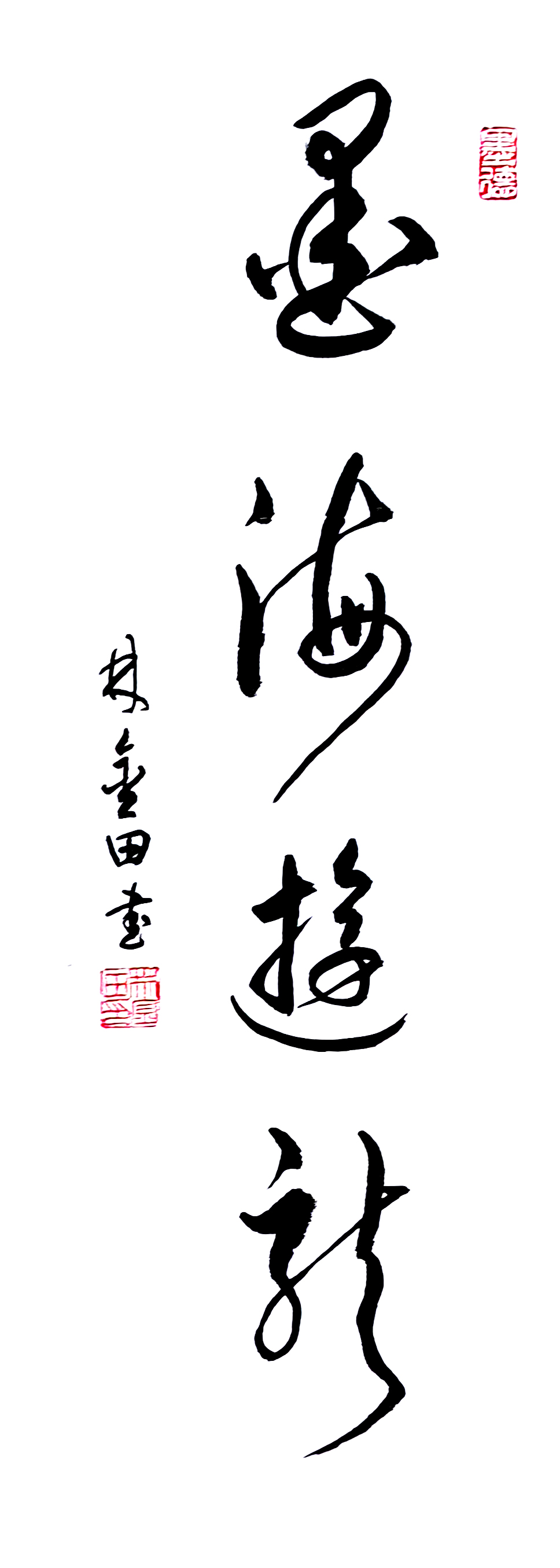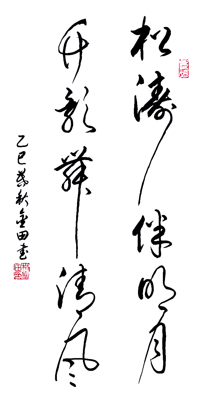 在艺术探索的道路上,林金田始终以虔诚之心临习历代经典碑帖,在传统中汲取无尽养分。他潜心研习孙过庭《书谱》,领悟"翰逸神飞"的草书精髓;追摹二王法帖,体会王羲之的潇洒飘逸与王献之的奔放不羁;沉醉于怀素《自叙帖》的狂草世界,感受"忽然绝叫三五声,满壁纵横千万字"的创作激情。在篆隶方面,他临习《曹全碑》,得其秀美飘逸之韵;揣摩《峄山碑》,感悟秦篆古朴浑厚之风。这种广采博取的研习方式,使他的书法既得传统精髓,又能融会贯通,最终形成独具特色的艺术风格。